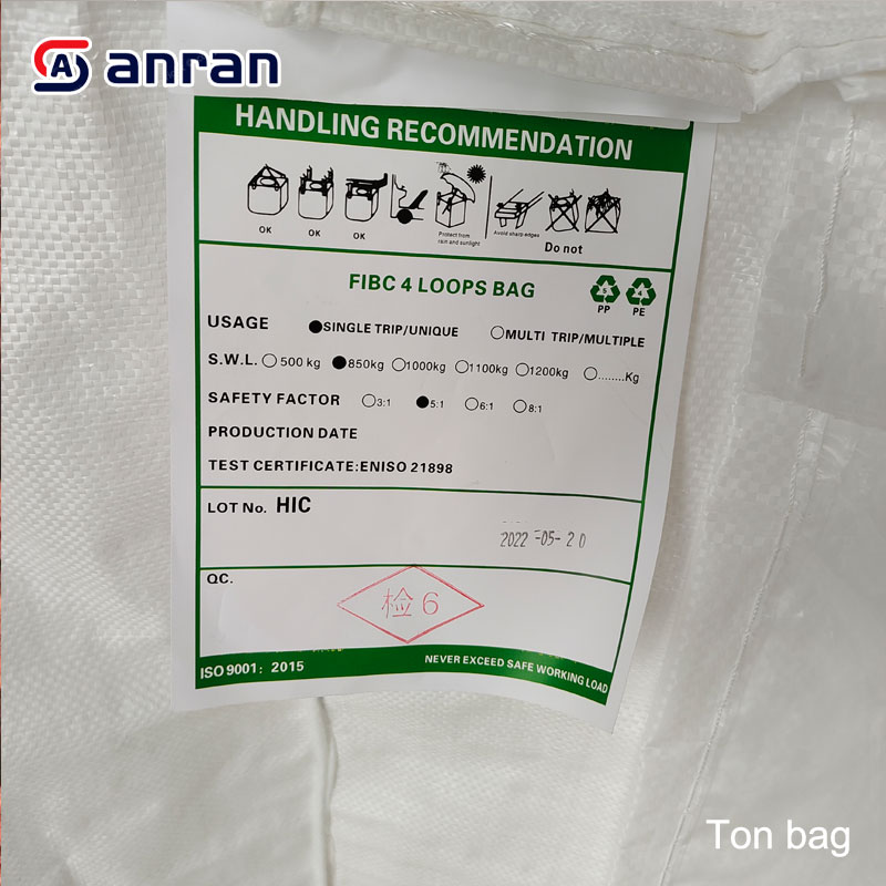 he bag has small upper and lower openings, four lifting rings, and can be coated or uncoated. The bag is reinforced at the four corners to ensure a square shape after loading. It weighs 0.5-1.5 tons.